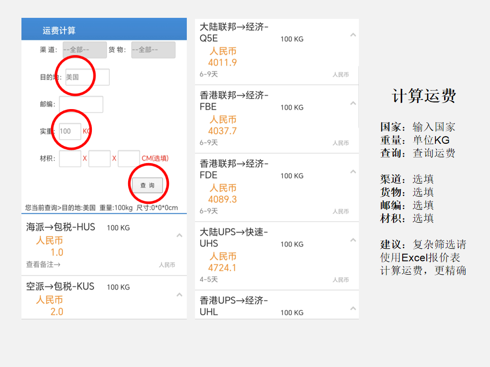 微信公众号计算实时国际快递价格